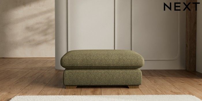 7.2.6 Buy N Premium The Snuggle Grand Extra Large Footstool Cotswold Chenille Dark Green Square Angle - Mid from the Laura Ashley online shop Click here to use our website with more accessibility support, for example screen readers