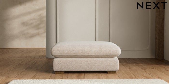 7.2.6 Buy N Premium The Snuggle Grand Extra Large Footstool Cotswold Chenille Light Natural Square Angle - Mid from the Laura Ashley online shop Click here to use our website with more accessibility support, for example screen readers