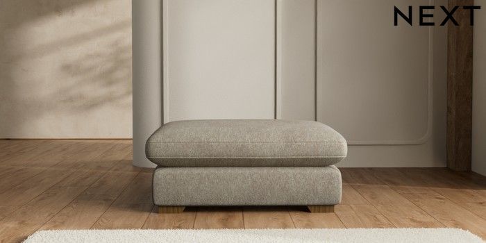7.2.6 Buy N Premium The Snuggle Grand Extra Large Footstool Cotswold Chenille Mid Mink Brown Square Angle - Mid from the Laura Ashley online shop Click here to use our website with more accessibility support, for example screen readers
