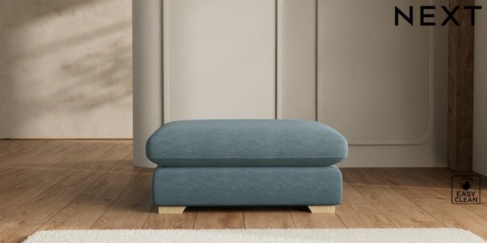 7.2.6 Buy N Premium The Snuggle Grand Extra Large Footstool Fine Chenille Easy Clean Mid Blue Square Angle - Light from the Laura Ashley online shop Click here to use our website with more accessibility support, for example screen readers