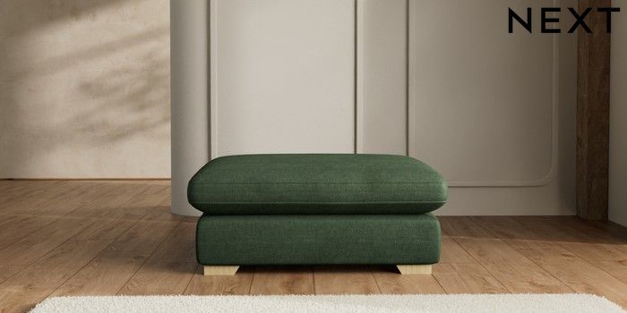 7.2.6 Buy N Premium The Snuggle Grand Extra Large Footstool Luxe Chenille Dark Green Square Angle - Light from the Laura Ashley online shop Click here to use our website with more accessibility support, for example screen readers