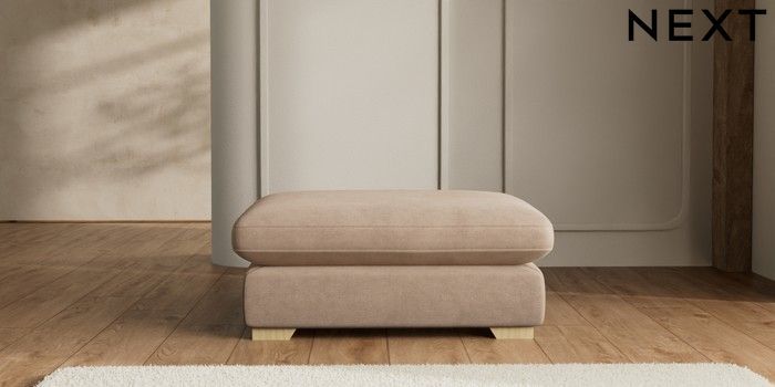 7.2.6 Buy N Premium The Snuggle Grand Extra Large Footstool Luxe Chenille Mid Natural Square Angle - Light from the Laura Ashley online shop Click here to use our website with more accessibility support, for example screen readers