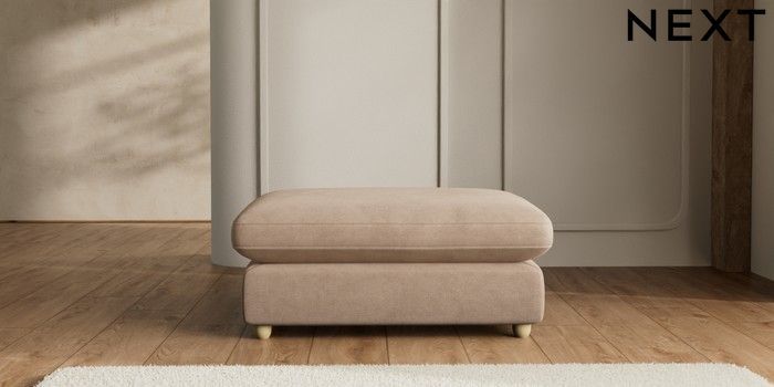 7.2.6 Buy N Premium The Snuggle Grand Extra Large Footstool Luxe Chenille Mid Natural Wooden Glide - Light from the Laura Ashley online shop Click here to use our website with more accessibility support, for example screen readers