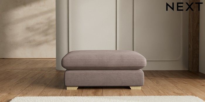7.2.6 Buy N Premium The Snuggle Grand Extra Large Footstool Luxe Chenille Mink Brown Square Angle - Light from the Laura Ashley online shop Click here to use our website with more accessibility support, for example screen readers