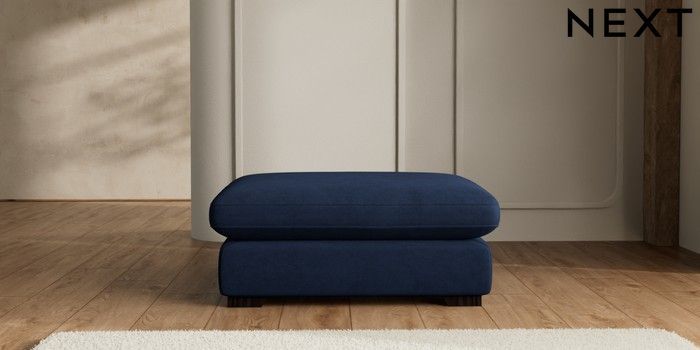 7.2.6 Buy N Premium The Snuggle Grand Extra Large Footstool Luxe Chenille Navy Blue Square Angle - Dark from the Laura Ashley online shop Click here to use our website with more accessibility support, for example screen readers