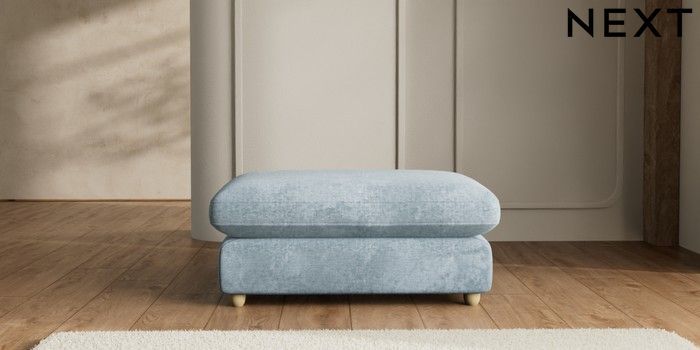 7.2.6 Buy N Premium The Snuggle Grand Extra Large Footstool Plush Chenille Light Blue Wooden Glide - Light from the Laura Ashley online shop Click here to use our website with more accessibility support, for example screen readers