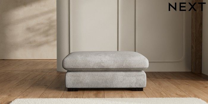 7.2.6 Buy N Premium The Snuggle Grand Extra Large Footstool Plush Chenille Light Grey Square Angle - Dark from the Laura Ashley online shop Click here to use our website with more accessibility support, for example screen readers