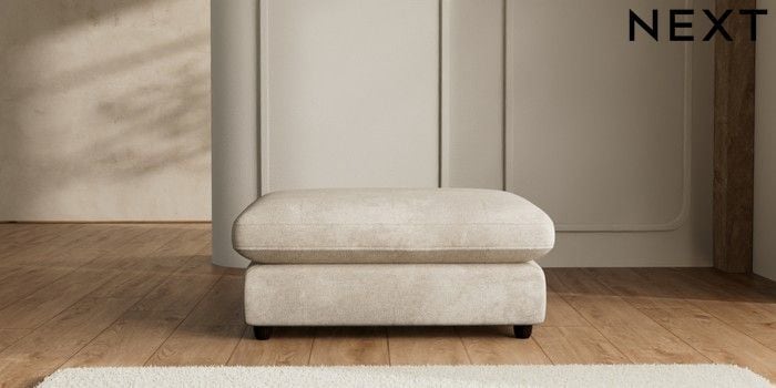 7.2.6 Buy N Premium The Snuggle Grand Extra Large Footstool Plush Chenille Light Natural Wooden Glide - Dark from the Laura Ashley online shop Click here to use our website with more accessibility support, for example screen readers