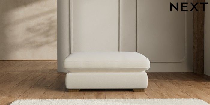 7.2.6 Buy N Premium The Snuggle Grand Extra Large Footstool Ripple Chenille Oyster Square Angle - Mid from the Laura Ashley online shop Click here to use our website with more accessibility support, for example screen readers