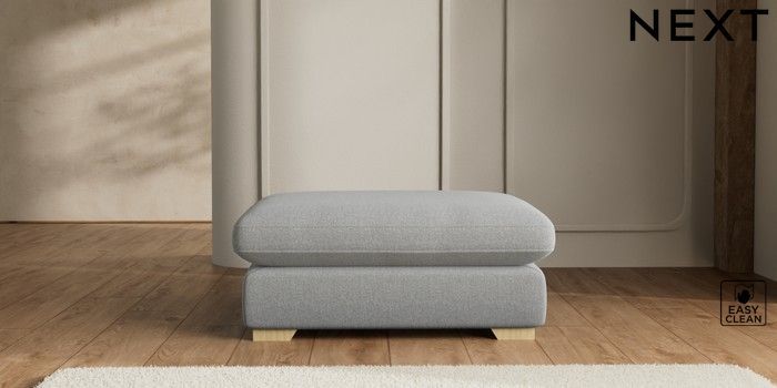 7.2.6 Buy N Premium The Snuggle Grand Extra Large Footstool Tweedy Blend Easy Clean Light Silver Grey Square Angle - Light from the Laura Ashley online shop Click here to use our website with more accessibility support, for example screen readers