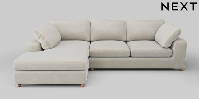 7.0.3 Buy N Premium The Snuggle Grand Large Corner Chaise - Left Hand Luxe Chenille Oyster Wooden Glide - Light from the Laura Ashley online shop Click here to use our website with more accessibility support, for example screen readers