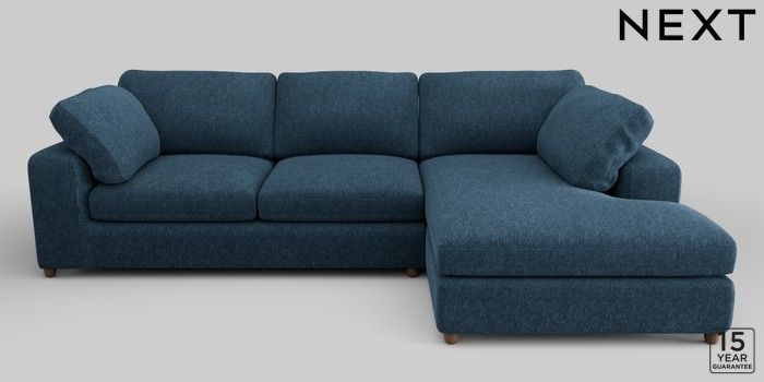 6.12.1 Buy N Premium The Snuggle Grand Large Corner Chaise - Right Hand Cotswold Chenille Dark Blue Wooden Glide - Mid from the Laura Ashley online shop Click here to use our website with more accessibility support, for example screen readers