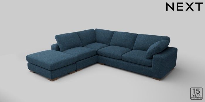 6.12.1 Buy N Premium The Snuggle Grand Large Open End Corner Chaise - Left Hand Cotswold Chenille Dark Blue Large Square Angle - Mid from the Laura Ashley online shop Click here to use our website with more accessibility support, for example screen readers