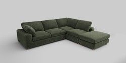 6.12.1 Buy N Premium The Snuggle Grand Large Open End Corner Chaise - Right Hand Luxe Chenille Mid Green Wooden Glide - Light from the Laura Ashley online shop Click here to use our website with more accessibility support, for example screen readers