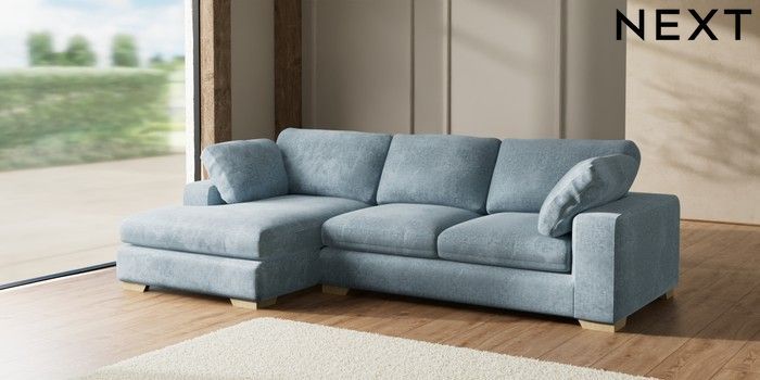 7.2.6 Buy N Premium The Snuggle Grand Large Sofa Chaise - Left Hand Plush Chenille Light Blue Large Square Angle - Light from the Laura Ashley online shop Click here to use our website with more accessibility support, for example screen readers