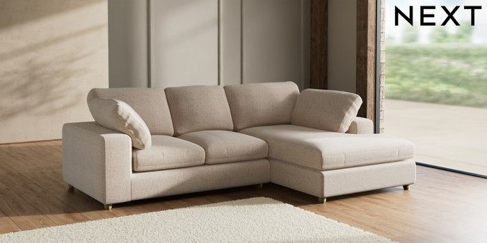 7.2.6 Buy N Premium The Snuggle Grand Medium Corner Chaise - Right Hand Multi Weave Mid Natural Wooden Glide - Light from the Laura Ashley online shop Click here to use our website with more accessibility support, for example screen readers