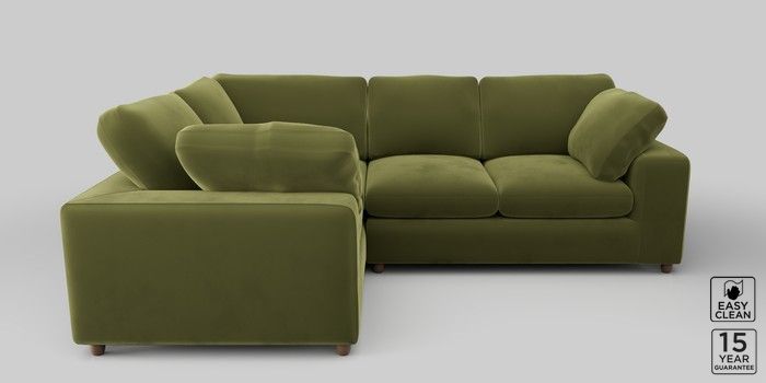 6.12.1 Buy N Premium The Snuggle Grand Medium Corner Sofa - Left Hand Plush Velvet Easy Clean Mid Olive Green Wooden Glide - Mid from the Laura Ashley online shop Click here to use our website with more accessibility support, for example screen readers