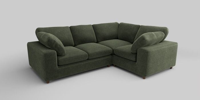 6.12.1 Buy N Premium The Snuggle Grand Medium Corner Sofa - Right Hand Luxe Chenille Mid Green Wooden Glide - Mid from the Laura Ashley online shop Click here to use our website with more accessibility support, for example screen readers