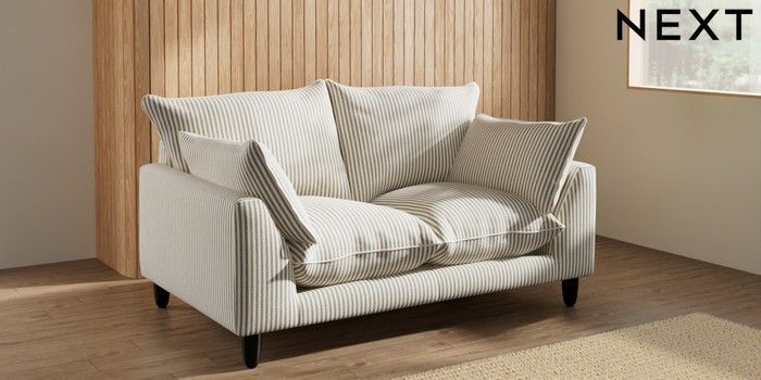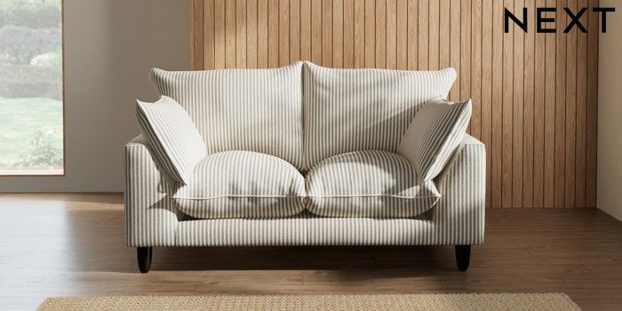 7.3.1 Buy Noa Deep Relaxed Sit 2 Seater Small Sofa Chenille Stripe Moss Green High Leg - Dark from the Laura Ashley online shop Click here to use our website with more accessibility support, for example screen readers