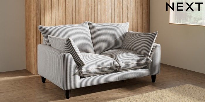 7.3.1 Buy Noa Deep Relaxed Sit 2 Seater Small Sofa Chenille Stripe Slate Blue High Leg - Dark from the Laura Ashley online shop Click here to use our website with more accessibility support, for example screen readers