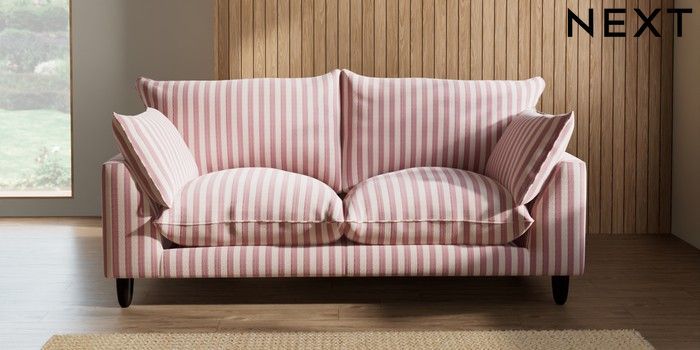 7.2.6 Buy Noa Deep Relaxed Sit 3 Seater Small Sofa Bold Chenille Stripe Dark Pink High Leg - Dark from the Laura Ashley online shop Click here to use our website with more accessibility support, for example screen readers