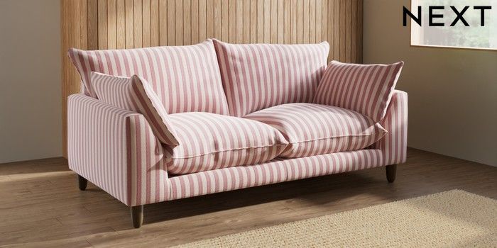 7.3.1 Buy Noa Deep Relaxed Sit 3 Seater Small Sofa Bold Chenille Stripe Dark Pink High Leg - Mid from the Laura Ashley online shop