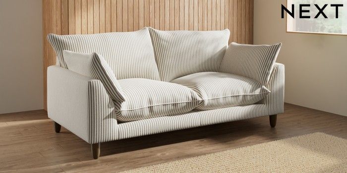 7.3.1 Buy Noa Deep Relaxed Sit 3 Seater Small Sofa Chenille Stripe Moss Green High Leg - Mid from the Laura Ashley online shop Click here to use our website with more accessibility support, for example screen readers