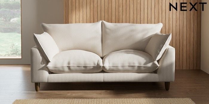 7.3.1 Buy Noa Deep Relaxed Sit 3 Seater Small Sofa Chenille Stripe Natural High Leg - Mid from the Laura Ashley online shop Click here to use our website with more accessibility support, for example screen readers