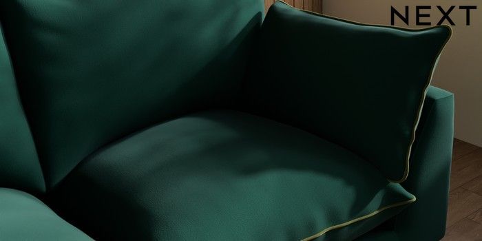 7.3.1 Buy Noa Deep Relaxed Sit 3 Seater Small Sofa Plush Velvet with Contrast Bottle Grn with Mid Olive Grn High Leg - Dark from the Laura Ashley online shop