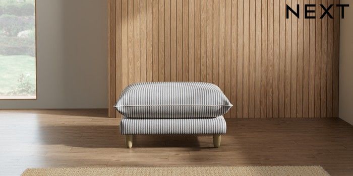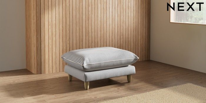7.3.1 Buy Noa Deep Relaxed Sit Footstool Chenille Stripe Slate Blue High Leg - Light from the Laura Ashley online shop Click here to use our website with more accessibility support, for example screen readers