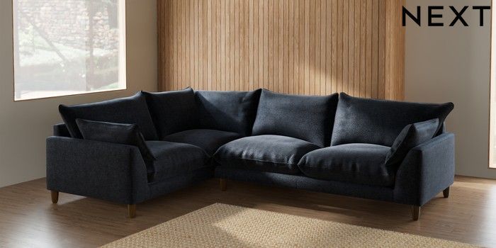 7.2.6 Buy Noa Deep Relaxed Sit Large Corner Sofa - Left Hand Boucle Chenille Dark Slate Blue High Leg - Mid from the Laura Ashley online shop Click here to use our website with more accessibility support, for example screen readers