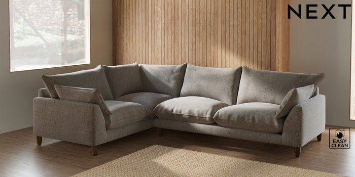 7.2.6 Buy Noa Deep Relaxed Sit Large Corner Sofa - Left Hand Chunky Boucle Easy Clean Dove High Leg - Mid from the Laura Ashley online shop Click here to use our website with more accessibility support, for example screen readers