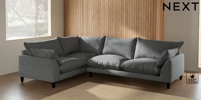 7.2.6 Buy Noa Deep Relaxed Sit Large Corner Sofa - Left Hand Chunky Boucle Easy Clean Mid Grey High Leg - Dark from the Laura Ashley online shop Click here to use our website with more accessibility support, for example screen readers