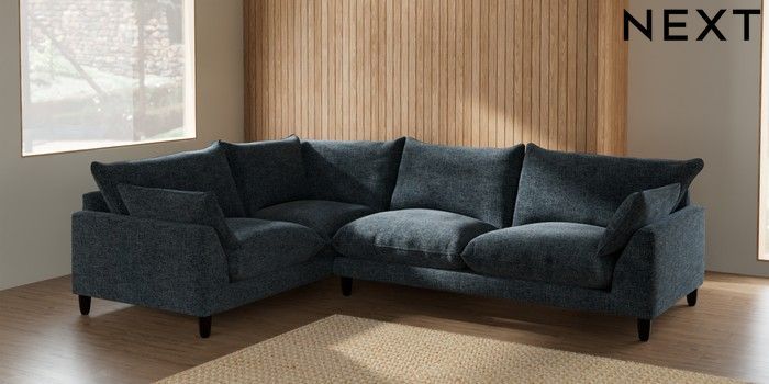 7.2.6 Buy Noa Deep Relaxed Sit Large Corner Sofa - Left Hand Chunky Chenille Dark Navy Blue High Leg - Dark from the Laura Ashley online shop Click here to use our website with more accessibility support, for example screen readers