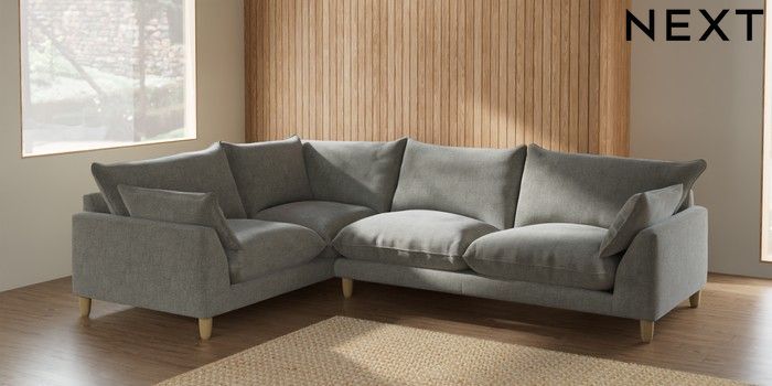 7.2.6 Buy Noa Deep Relaxed Sit Large Corner Sofa - Left Hand Chunky Chenille Light Grey High Leg - Light from the Laura Ashley online shop Click here to use our website with more accessibility support, for example screen readers
