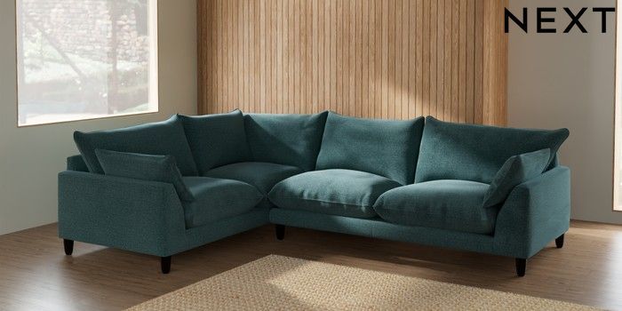 7.2.6 Buy Noa Deep Relaxed Sit Large Corner Sofa - Left Hand Chunky Chenille Mid Teal Green High Leg - Dark from the Laura Ashley online shop Click here to use our website with more accessibility support, for example screen readers