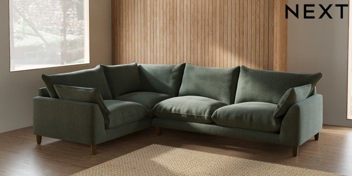 7.2.6 Buy Noa Deep Relaxed Sit Large Corner Sofa - Left Hand Chunky Texture Mid Forest Green High Leg - Mid from the Laura Ashley online shop Click here to use our website with more accessibility support, for example screen readers