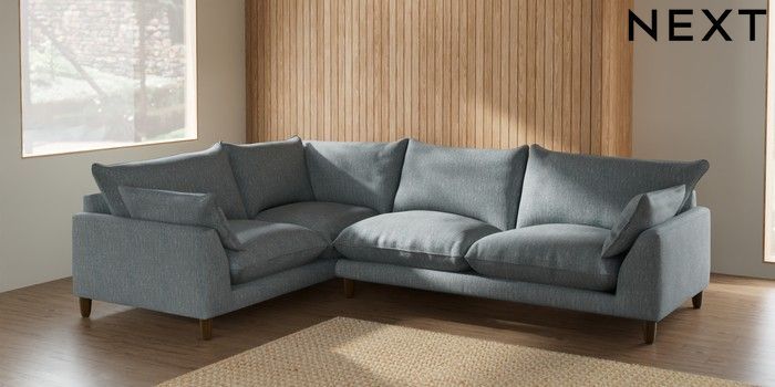 7.2.6 Buy Noa Deep Relaxed Sit Large Corner Sofa - Left Hand Chunky Weave Mid Blue High Leg - Mid from the Laura Ashley online shop Click here to use our website with more accessibility support, for example screen readers