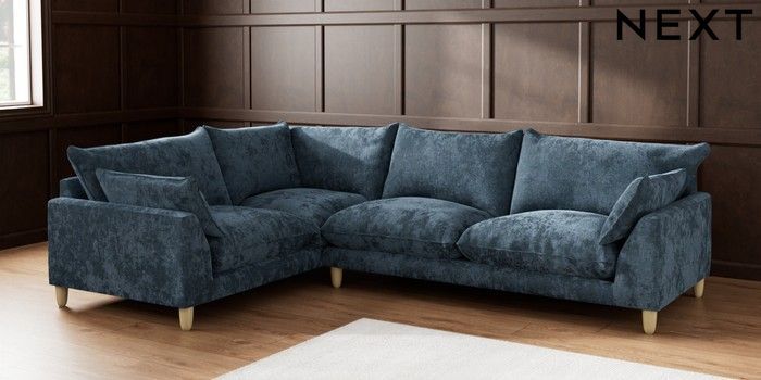 7.2.6 Buy Noa Deep Relaxed Sit Large Corner Sofa - Left Hand Distressed Velour Midnight Blue High Leg - Light from the Laura Ashley online shop Click here to use our website with more accessibility support, for example screen readers