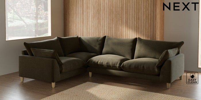 7.2.6 Buy Noa Deep Relaxed Sit Large Corner Sofa - Left Hand Fine Chenille Easy Clean Dark Moss Green High Leg - Light from the Laura Ashley online shop Click here to use our website with more accessibility support, for example screen readers