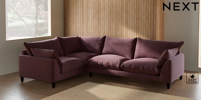 7.2.6 Buy Noa Deep Relaxed Sit Large Corner Sofa - Left Hand Fine Chenille Easy Clean Mid Mulberry Purple High Leg - Dark from the Laura Ashley online shop Click here to use our website with more accessibility support, for example screen readers