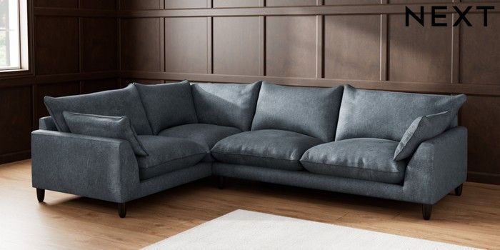 7.2.6 Buy Noa Deep Relaxed Sit Large Corner Sofa - Left Hand Plush Chenille Slate Blue High Leg - Dark from the Laura Ashley online shop Click here to use our website with more accessibility support, for example screen readers