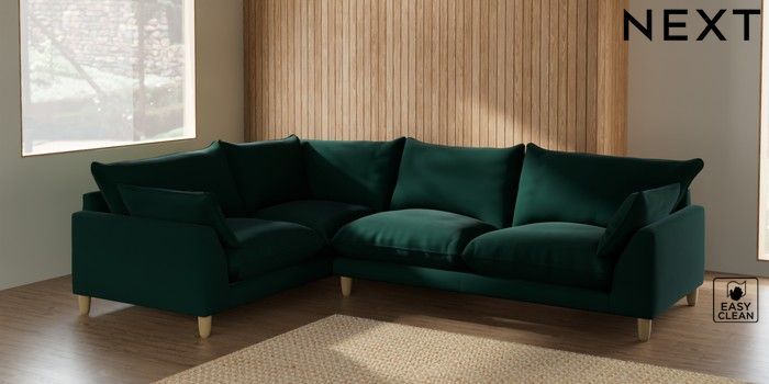 7.2.6 Buy Noa Deep Relaxed Sit Large Corner Sofa - Left Hand Plush Velvet Easy Clean Bottle Green High Leg - Light from the Laura Ashley online shop Click here to use our website with more accessibility support, for example screen readers