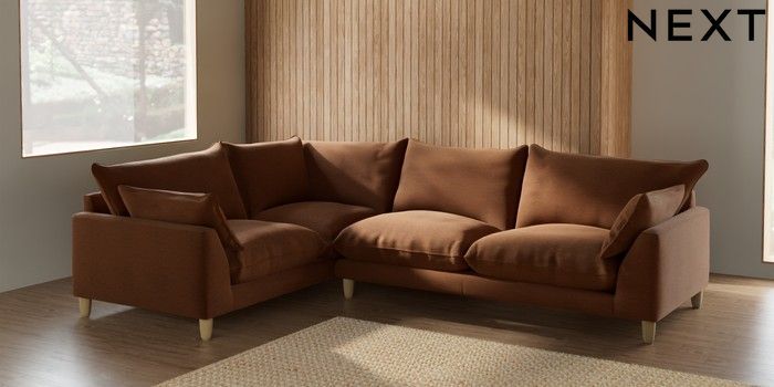 7.2.6 Buy Noa Deep Relaxed Sit Large Corner Sofa - Left Hand Ripple Chenille Mid Rust Brown High Leg - Light from the Laura Ashley online shop Click here to use our website with more accessibility support, for example screen readers