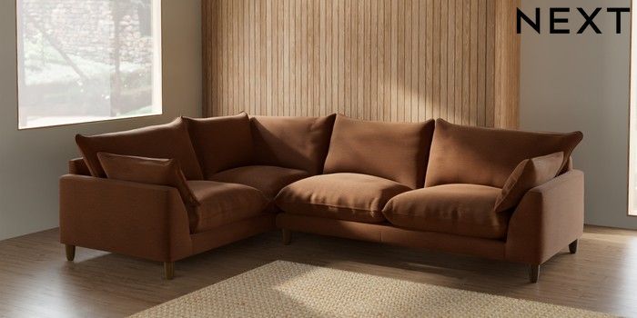 7.2.6 Buy Noa Deep Relaxed Sit Large Corner Sofa - Left Hand Ripple Chenille Mid Rust Brown High Leg - Mid from the Laura Ashley online shop Click here to use our website with more accessibility support, for example screen readers