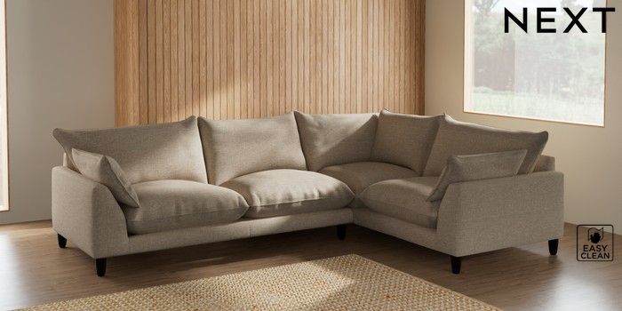 7.2.6 Buy Noa Deep Relaxed Sit Large Corner Sofa - Right Hand Boucle Weave Easy Clean Dark Natural High Leg - Dark from the Laura Ashley online shop Click here to use our website with more accessibility support, for example screen readers