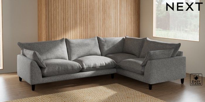 7.2.6 Buy Noa Deep Relaxed Sit Large Corner Sofa - Right Hand Chunky Boucle Easy Clean Light Grey High Leg - Dark from the Laura Ashley online shop Click here to use our website with more accessibility support, for example screen readers