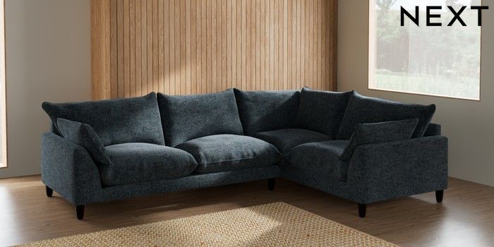 7.2.6 Buy Noa Deep Relaxed Sit Large Corner Sofa - Right Hand Chunky Chenille Dark Navy Blue High Leg - Dark from the Laura Ashley online shop Click here to use our website with more accessibility support, for example screen readers