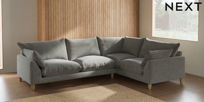 7.2.6 Buy Noa Deep Relaxed Sit Large Corner Sofa - Right Hand Chunky Chenille Light Grey High Leg - Light from the Laura Ashley online shop Click here to use our website with more accessibility support, for example screen readers