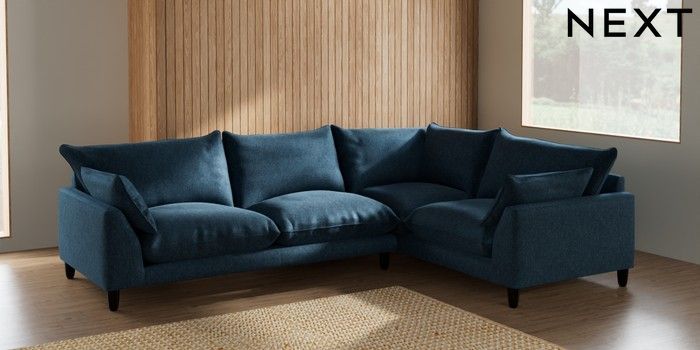 7.2.6 Buy Noa Deep Relaxed Sit Large Corner Sofa - Right Hand Cotswold Chenille Dark Blue High Leg - Dark from the Laura Ashley online shop Click here to use our website with more accessibility support, for example screen readers